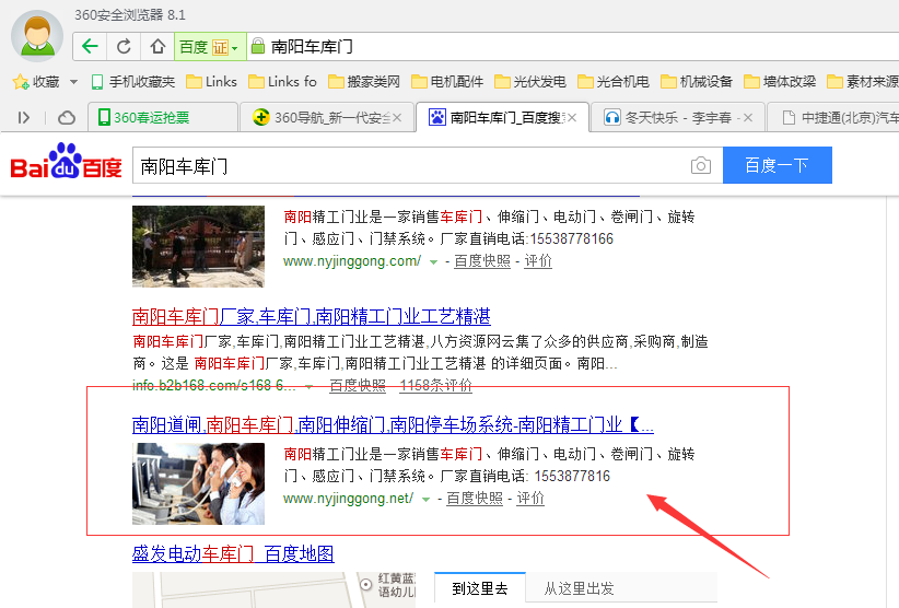 例如:在百度輸入 南陽車庫門 會出現(xiàn)4條排名都是 南陽精工門業(yè)